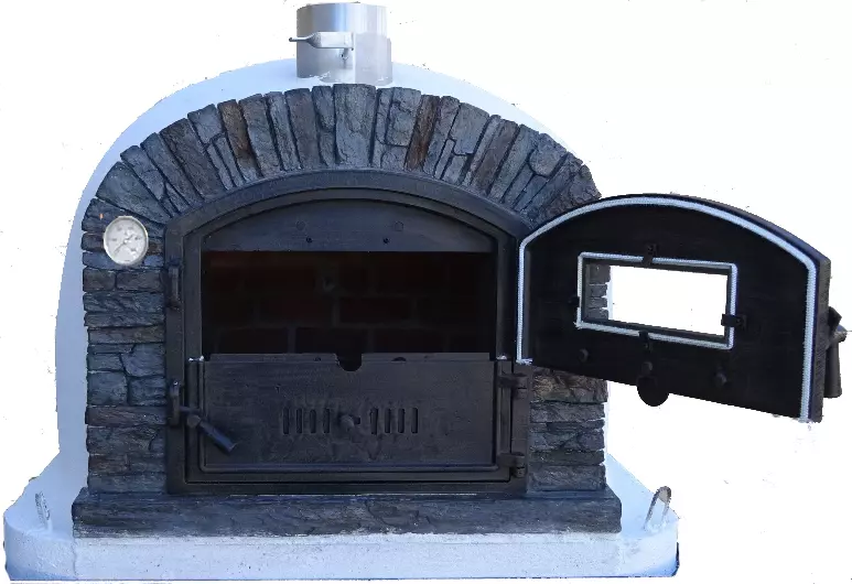 Holzbackofen „Ventura Black“ AL mit Gußtüre und Sichtfenster 100×100