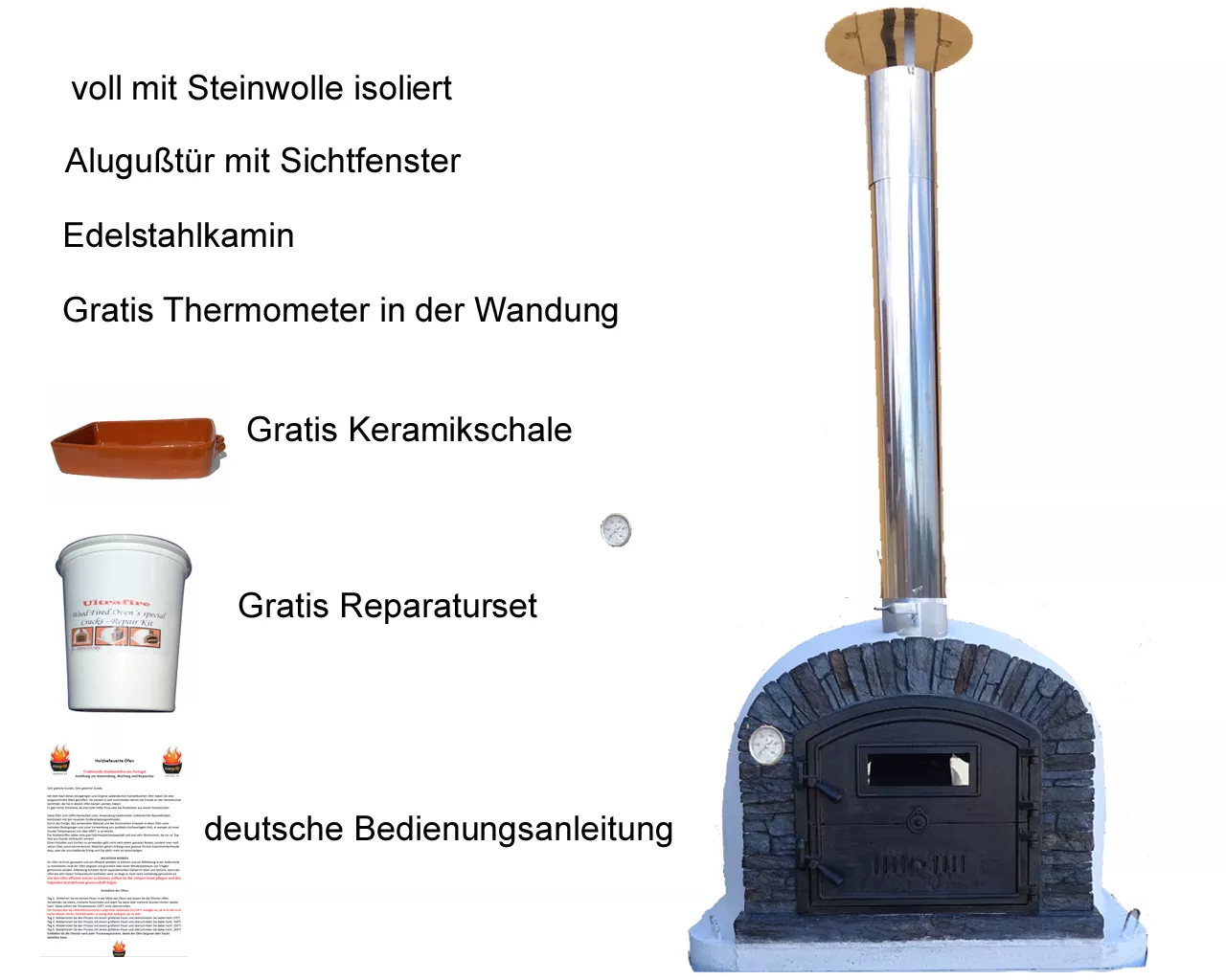 - Leistung: bis zu 70 Pizzen in der Stunde, 90 Sekunden Backzeit für eine Pizza