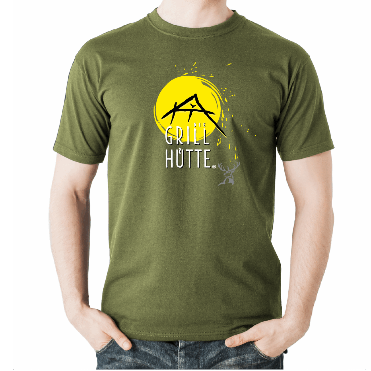 Tshirt mit Grillhütten LOGO erhältlich in den Größen XS, S, M, L, XL, XXL, XXXL sowie 4XL.